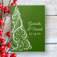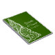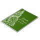 Customise the festive Green Christmas Tree Winter Wedding Spiral Notebook with the personal names of the bride and groom and December marriage ceremony date to create a one of a kind planner, advice book for the newlyweds or guest book. This elegant customised wintery nuptial note book features a white intricate xmas tree with a green background.