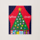 Green Christmas Tree with Blue Curtains: Jigsaw Puzzle