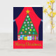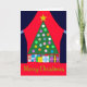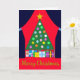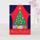 Green Christmas Tree with Blue Drapes: Card