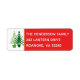 These return address labels are red and white in colour with two green and gold simulated foil Christmas or Holiday trees on it. The white name and address info is the same font that s used on the matching greeting card and can be personalised how you want.