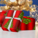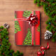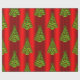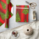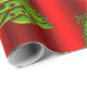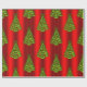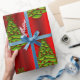 A pretty and colourful Christmas wrap featuring a pattern of green Christmas trees over a vivid, metallic red background to add a splash of colour and festive style to your gift wrapping this holiday season.