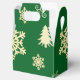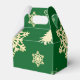 A colourful Christmas gift box featuring a pattern of cream snowflakes, Christmas trees and swirls scattered over a traditional green Christmas background to add a touch of class and style to your Christmas gift giving this year.