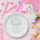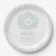 Wedding leaf monogram art wedding paper plates. Simple leaf design circling your own monogram initials in sage grey green and grey on crisp white. Other colours and matching wedding items available. © Original leaf drawing and design by Sarah Trett for www.mylittleedenweddings.com on zazzle.