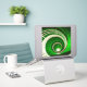 Green circular stairway captured in a school in Zurich, Switzerland.