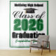 Customize your own green high school Class of 2026 graduation party photo booth tapestry for a high school or college graduate. Cool varsity letters for the year on commemorative decor for seniors.
