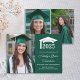 Modern green and white graduation 3-photo announcement card for college/university graduates. Customisation allows you to add your photos and text, and/or change the colour of your card. Contact me for assistance with your customisations or to request matching or coordinating products.
