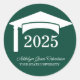 Green graduation custom stickers with a graduation cap and text "Class of 2025" for college/university graduates. Personalised with the name of the graduate in an elegant script font, along with her school name. Perfect for sealing announcement and invitation envelopes or for putting onto party guest favour bags. Customisation allows you to add your text and change the colour of the background if you choose. Contact me for assistance with your customisations or to request matching or coordinating products.