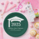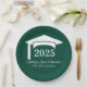 Green graduation custom paper plates with a graduation cap and text "Class of 2025" for college/university graduates. Personalised with the name of the graduate in an elegant script font, along with her school name. Perfect for the graduation party. Customisation allows you to add your text and change the colour of the background if you choose. Contact me for assistance with your customisations or to request matching or coordinating products.