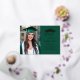 Modern green graduation photo gold foil announcement for college/university graduates. Customisation allows you to add your photo and text, and/or change the colour of your card. Contact me for assistance with your customisations or to request matching or coordinating products.