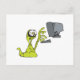 green computer typing alien monster blob postcard