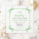 This cute and whimsical birthday party invitation features a cute green ribbon frame. The text combines handwritten script and sans serif fonts for a stylish and modern look.