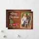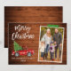 Modern Brush Script Watercolor Vintage Red Truck with Christmas Tree Merry Christmas Family Photo Holiday Card - Rustic Country Wood, Green Snowflake Craft Tape
