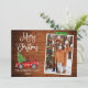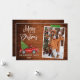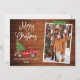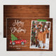 Modern Fun Calligraphy Script Watercolor Vintage Red Truck with Christmas Tree Merry Christmas Family Photo Holiday Card - Rustic Country Wood, Green Craft Tape with Snowflakes
