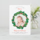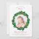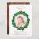 Introduce the birth of your beautiful baby girl or baby boy to your family and friends with this clean, simplistic and modern green cranberry wreath foliage and faux wood baby birth announcement photo card. We've hand painted this beautiful green cranberry wreath foliage for you to place your precious new baby's photo. A clean and modern layout that allows for your new baby photo to take centre stage. A script handwriting style typography text "welcoming with love " is displayed at the top off the baby announcement card. The reverse side features a a rustic wood texture faux wood background with a wreath monogram place in the centre of the card. All illustrations contained in this modern clean baby birth announcement card are hand-drawn original artwork by Moodthology. You can customise the text size, text colour, font and layout for your own personal design preference.