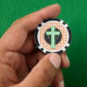 Cute bright green colourful Christian cross on pattern. Religious symbol of Christianity.