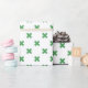 Green cross stitches on white wrapping paper