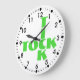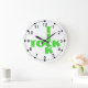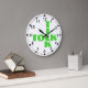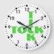 This lightweight acrylic wall clock face is modernly designed with the bright green words "Tick Tock" in a crossword puzzle style design. The design includes an outer ring of black elements and an inner ring of black numbers. Be sure to check out the smaller 8" diameter.