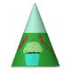 Festive Birthday Chocolate Cupcake Party Hats. Yummy green frosting chocolate cupcake with colourful sprinkles and red white candle with colourful flicker flame in a blue green pleated cupcake wrapper. Birthday Party Fun is written in red text. Colourful flying balloons are on the back of the hats in red, green, blue, orange, yellow. Party hats have a teal blue and green background for a two tone look. Fun birthday party celebration hats for anyone. Original Graphic Artwork design © 2013, 2016 TamiraZDesigns. All Rights Reserved. Visit my store for more original items: www.zazzle.com/tamirazdesigns*