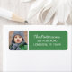 Personalised Christmas return address labels with your custom family photo on a green background. Personalise it with your family name and return address. Use the design tools to choose any background colour, edit the text fonts and colours or add more photos to create unique one of a kind holiday return address labels.