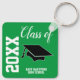 Add your graduation year for a unique high school senior gift idea. Order them for the entire high school graduating class. Perfect incoming incoming high school seniors as back-to-school gifts. If you are looking for graduation party favours, ideas, or small graduation gift ideas gifts then these green custom keychains are perfect. Save money when you order in bulk for graduating high school seniors. Green, black, and white school colour design graduation items are hard to find. Match with fun green graduation cap school colour napkins, plates, and invitations.