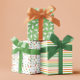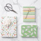 Cute gender neutral baby shower wrapping paper sheets with bunnies, carrots, feathers, and stripes in shades of green, yellow, and orange. Green baby shower wrapping sheets for a spring baby shower or Easter baby shower.