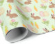 Cute Easter gift wrap with bunnies, tulips, carrots and eggs.