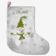 Add a festive touch to your fireplace mantle this holiday season with a Green Cute Snowman Holiday Stocking. Stocking design features a cute snowman in a hat, scarf and gloves adorned with grey and white snowflakes against a grey grunge background with a space you can add your name for personalisation. Additional gift and holiday items available with this design as well.