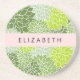 Green Dahlia Flowers, Floral Pattern, Your Name Coaster