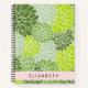 Green Dahlia Flowers, Floral Pattern, Your Name Notebook