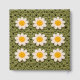 This charming crochet-inspired image features a repeating granny square pattern with white daisies and golden yellow centers on a rich green background. Perfect for lovers of handmade aesthetics, retro floral designs, and cozy cottagecore style. Ideal for use on stationery, home décor, fabric prints, phone cases, or gifts, this design evokes warmth, creativity, and vintage charm. A great choice for crafters, crochet fans, and anyone who appreciates floral textile patterns with a soft, handmade feel.
