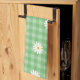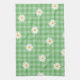 Green Daisy Plaid Gingham Check Flower Pattern Tea Towel