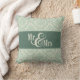 Green Damask "Mr & Mrs" pillow, personalised Cushion