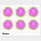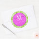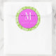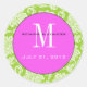 Green Damask Pink Monogram Wedding Sticker