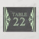 Elegant and chic Deco Chalkboard Table Number Postcard featuring a trendy chalkboard texture look background and a pair of light green art deco swirl borders. This lovely table card is perfect for an art deco 1920's themed wedding. Easy to customise, simply add the appropriate table number(s) in the text field provided. Click "Customise It" to find additional personalisation options.