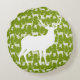 This pretty deer design round pillow is perfect for anyone who loves deer, animals, wildlife,and fun designs! Features several small rustic white deer silhouettes on a background of bright green with a big white silhouette doe on front, buck on back. This deer pillow is perfect for the living room, den, family room, family cabin on the lake, and of course it makes a great gift.