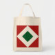 A bold, geometric pattern with a green diamond in the centre surrounded by a white diamond that is flanked by 4 red triangles in the corners. The red and green is perfect for Christmas!