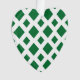 A bold, geometric pattern of large and small green diamonds on a white background. The white forms a lattice which separates the diamond shapes.