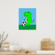 Green Dinosaur Loves Soccer Poster