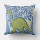 Green Dinosaur on Zigzag Chevron - Blue and White Cushion