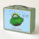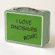 Green Dinosaur Spaceship Brown Eyes Stars Metal Lunch Box