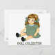 Precious rag doll dressed in green with the words, "Doll Collector".