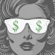 Green Dollar Signs in Your Eyes Retro Sunglasses