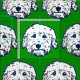 Doodle dog fabric on green