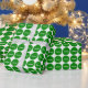 A wrapping paper designed with a green dot pattern on a white background and name. Customise the wrapping paper with your special name or text among other options.