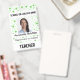 A fun teacher photo ID badge to identify yourself on classroom kids will be curious about the badge and the content. There is space to add school or college name, teacher name, department or subject, general position and your photo. Click on "personalise this template" to add your personal information.