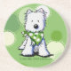 Sandstone coaster featuring west highland white terrier dog breed art by children's book Illustrator, Kim Niles.