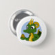 Button with an illustration of head of a cute little green dragon holding a golden egg, design in blue circle, cute fantasy / fairy-tale design for kids by Maxiharmony