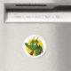 Magnet with illustration of head of a cute little green flying dragon, in yellow circle, cute fantasy / fairy-tale design for kids by Maxi Harmony