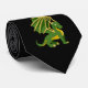 Black Tie with illustration of cute green a yellow (golden) dragon