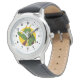 Watch with illustration of head of a cute little green flying dragon, in yellow circle, cute fantasy / fairy-tale design for kids by Maxi Harmony